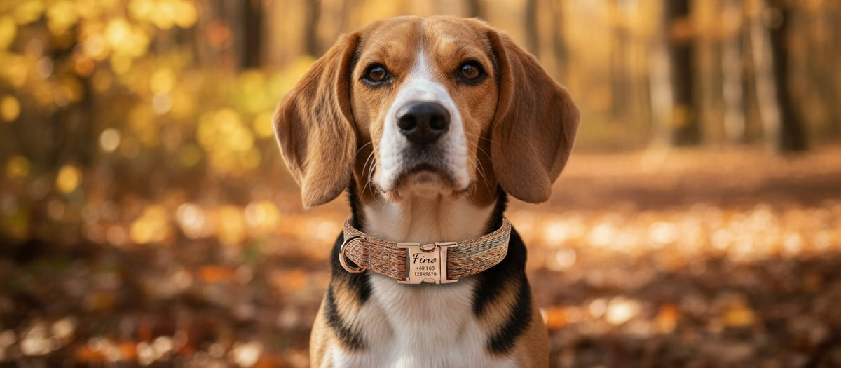 Fino – Personligt nylonhundhalsband med gravyr | Namn & telefonnummer | Robust, bekvämt & individuellt
