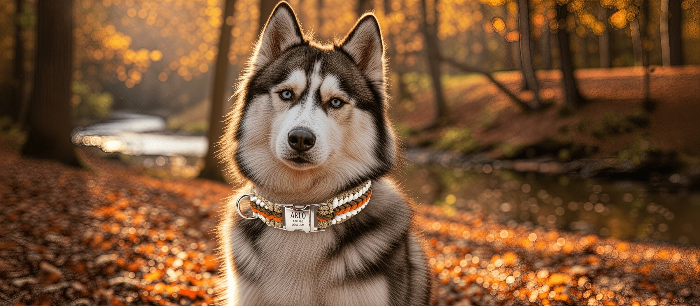 Arlo - Handgjort hundhalsband i paracord med gravyr | Orange-Brun-Vit-Beige