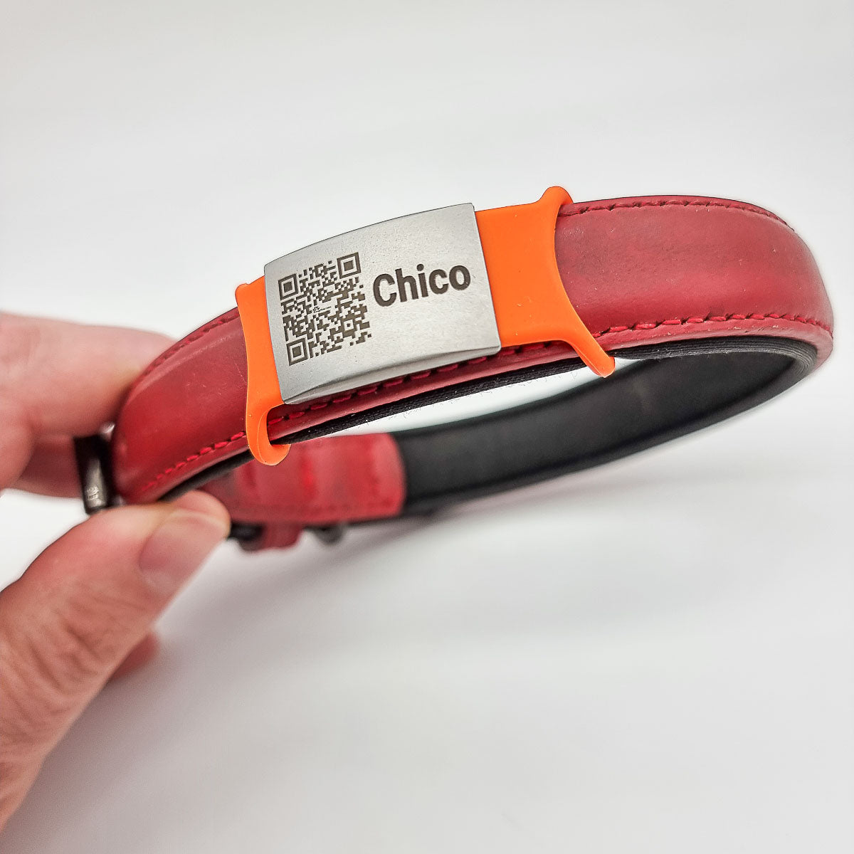 SOS-hundbricka med graverad QR-kod och namn/telefon/Tasso
