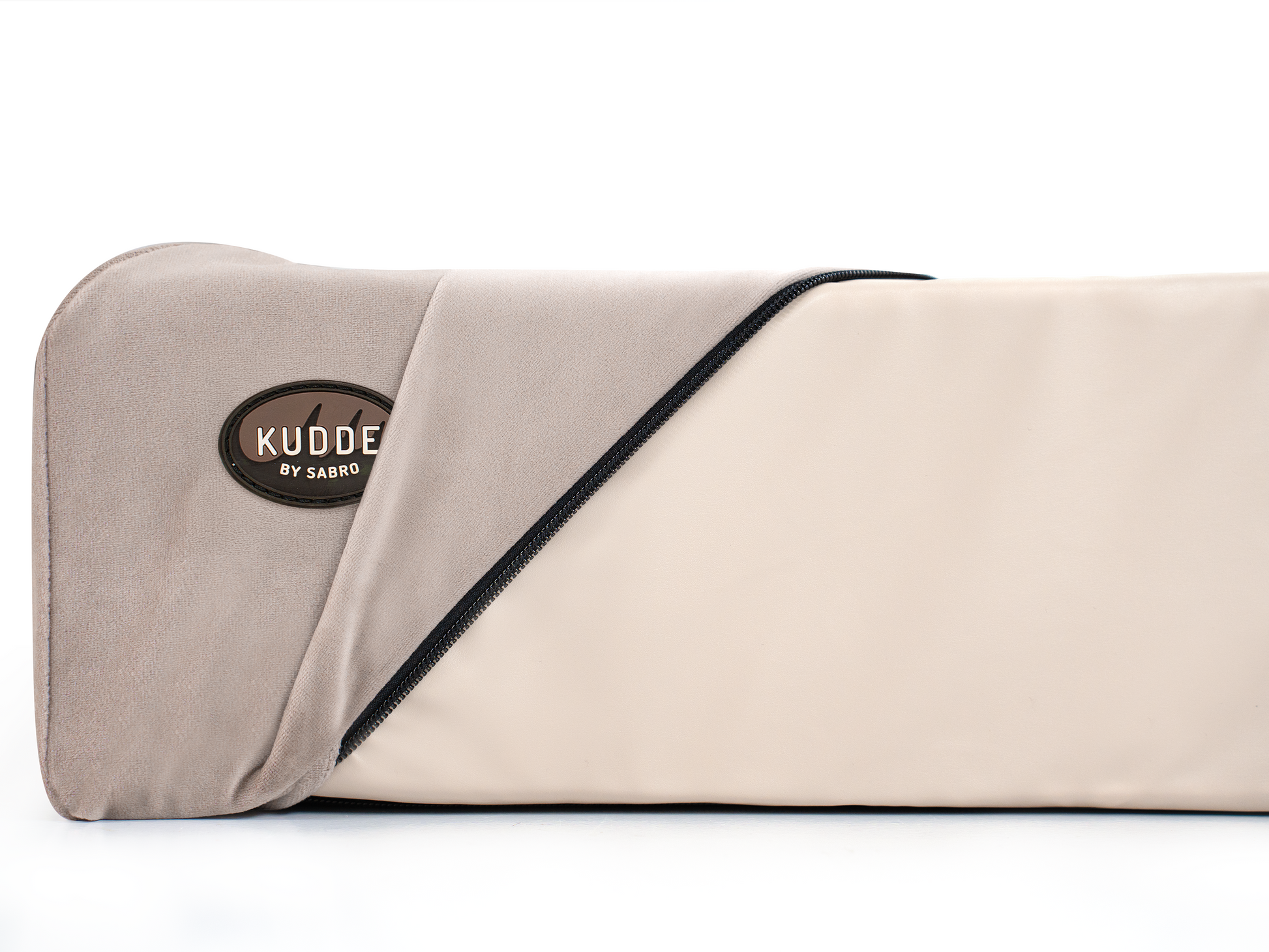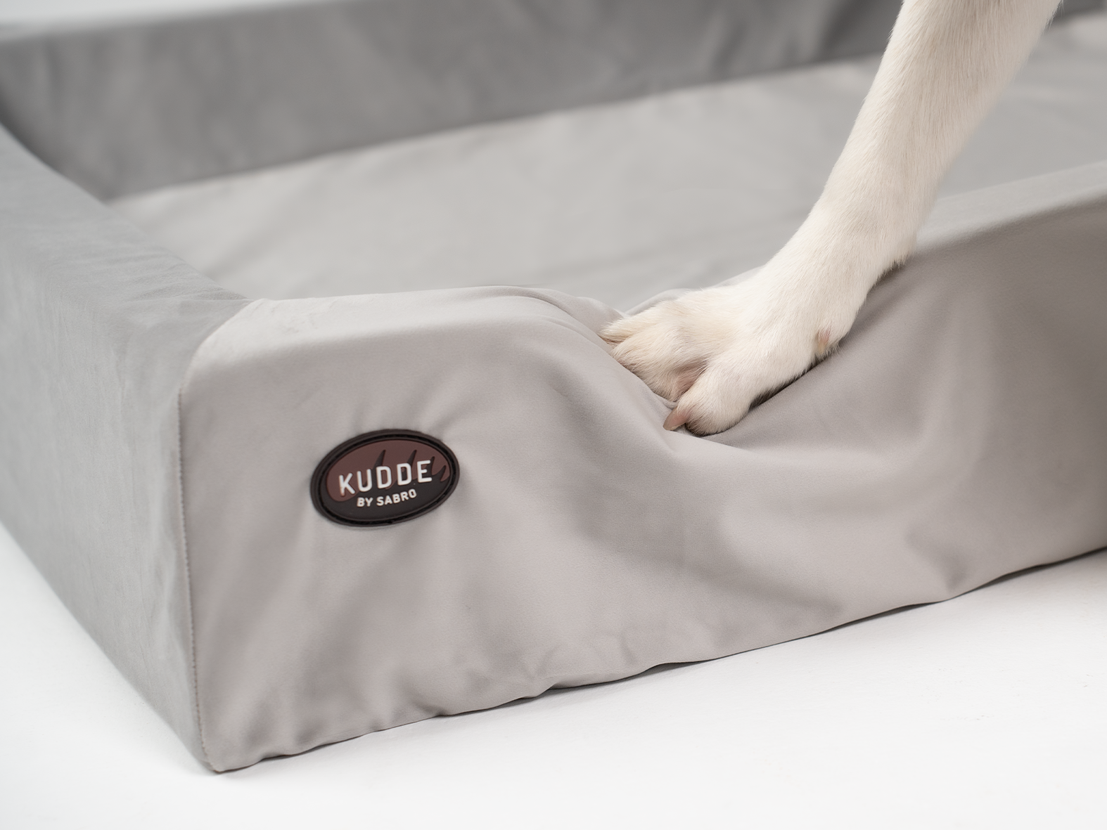 Der Samtstoff vereint Komfort mit Design: OEKO-TEX 100 zertifiziert, hypoallergen und wunderbar weich. Gleichzeitig ist der Bezug robust und pflegeleicht – perfekt für den Alltag mit Hund. Ein separater, wasserabweisender Schutzbezug unter dem Oberstoff schützt den Matratzenkern vor Feuchtigkeit und Schmutz – so bleibt das KUDDE Bett hygienisch sauber und langlebig.