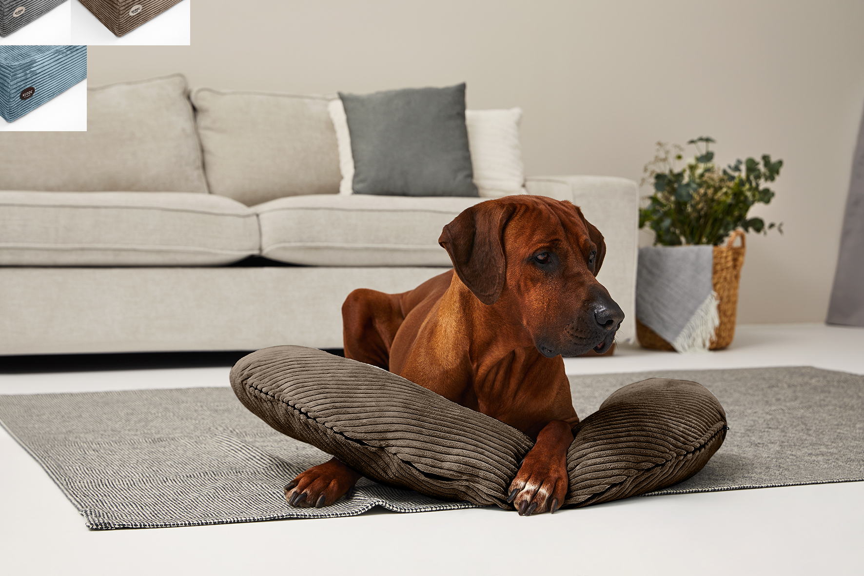 Unser neues SCHMUSEHÖRNCHEN besteht aus einem hochwertigen Cordbezug, einem feuchtigkeitsabweisendem Schutzbezug und einer angenehmen weichen Füllung. Durch die besondere Form fühlt sich dein Vierbeiner rundum geborgen und sicher. Hier kann er sich entspannt anlehnen und seinen Kopf bequem ablegen. Dank der temperaturausgleichenden Eigenschaften des Cordstoffs ist das Hundekissen im Winter wohlig warm und im Sommer angenehm kühl.